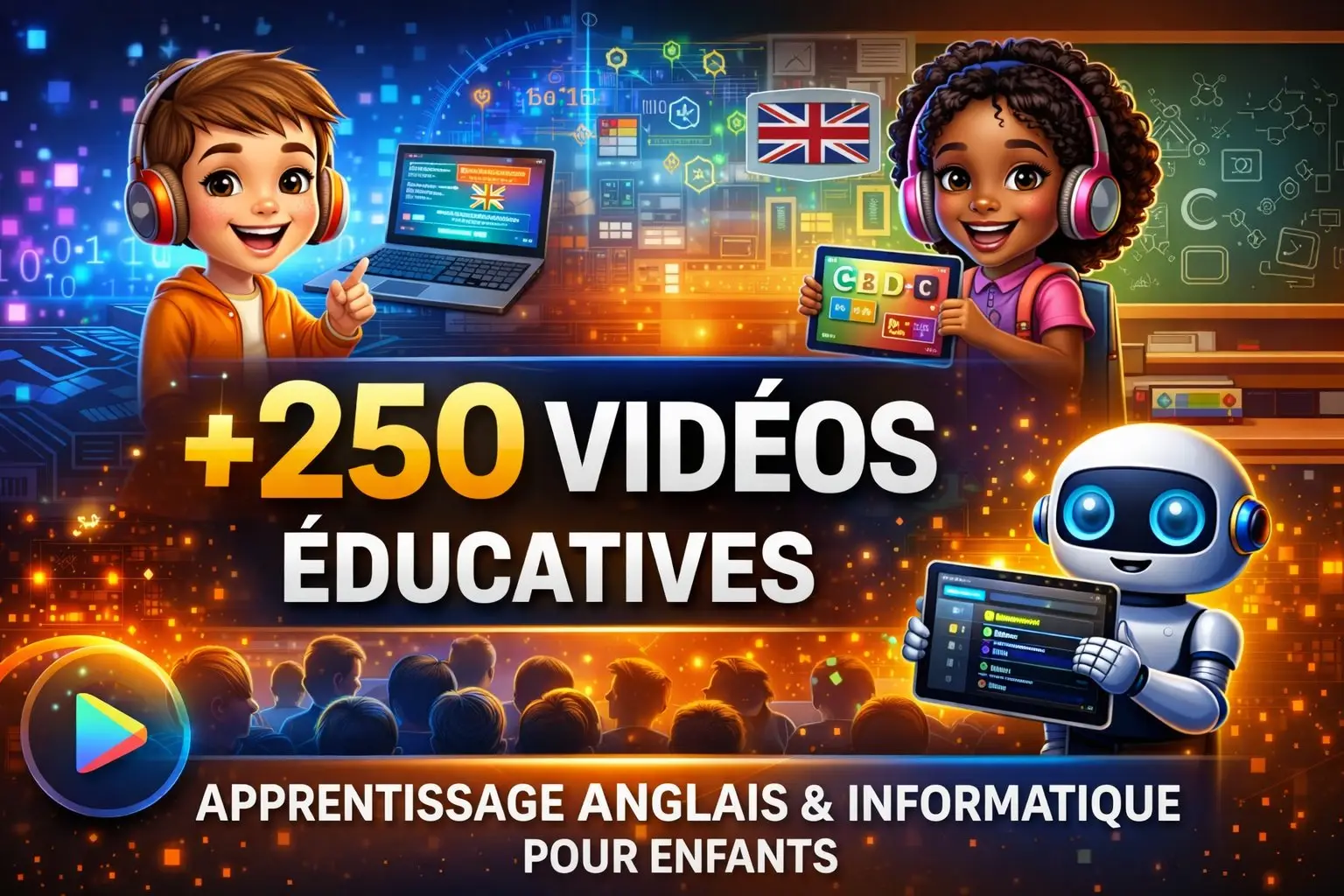 Ce programme regroupe plus de 250 vidéos pédagogiques captivantes pour développer les compétences essentielles en anglais et en informatique dès le plus jeune âge.